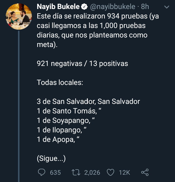 A través del sitio web covid19.gob.sv, se conocieron los casos registrados de este pasado jueves; de 921 pruebas, 13 dieron positivo al virus y todos corresponden a contagios locales.