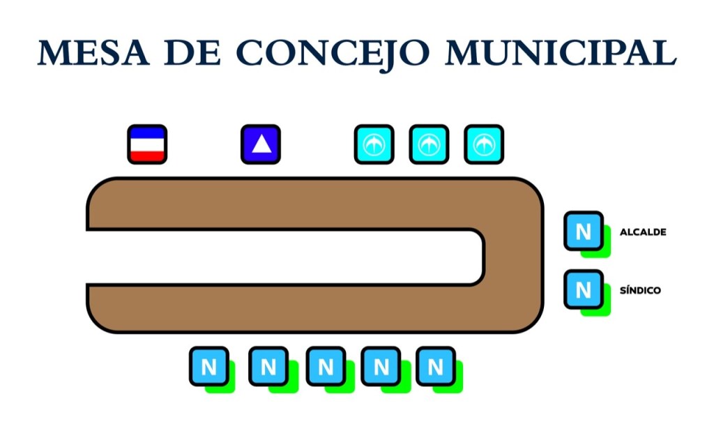 Actualmente, la mesa del Concejo Municipal esta conformada por el Alcalde Municipal, el Sindico, 5 concejales de Nuevas Ideas, 3 de GANA, 1 del PCN, 1 de ARENA y 4 concejales suplentes.