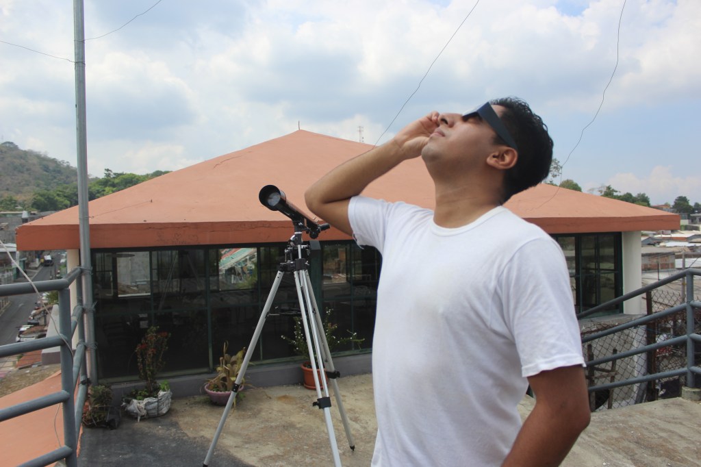 Este lunes 8 de abril, El Salvador fue testigo de un espectáculo celestial asombroso con la presencia del eclipse solar parcial. A pesar de la nubosidad intermitente en Cojutepeque, varios jóvenes y adultos pudieron disfrutar de este fenómeno de forma presencial en la terraza de El Café de Luna, y aquellos que no pudieron asistir en persona, lo experimentaron a través de la transmisión en vivo proporcionada por Cojutepeque Noticias.