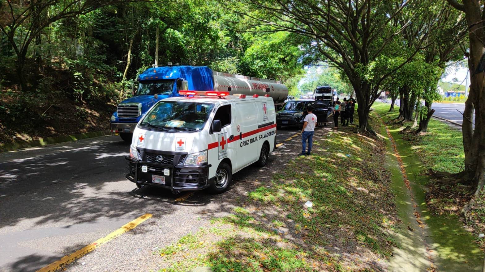 La Cruz Roja Salvadoreña, Seccional Cojutepeque, fue alertada sobre un accidente de tránsito ocurrido en el kilómetro 26 de la Carretera Panamericana, en el municipio de Santa Cruz Michapa.