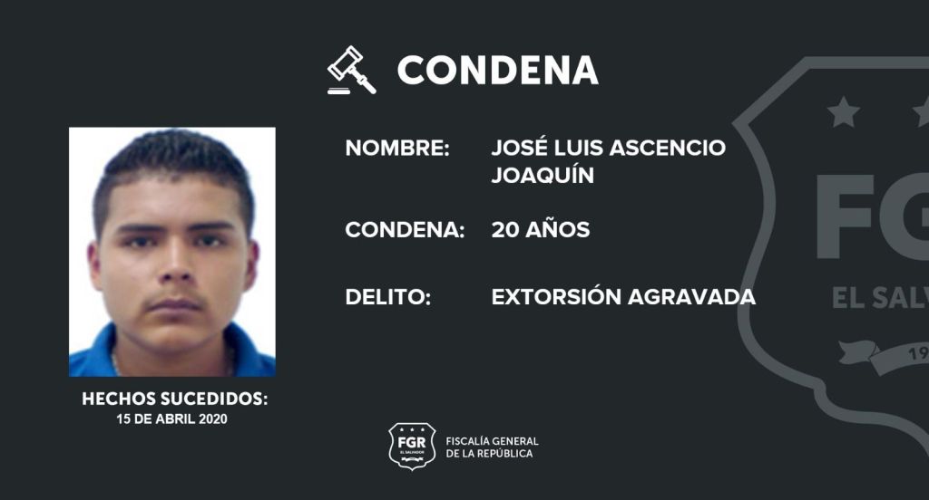 Un pandillero identificado como José Luis Ascencio Joaquín, miembro de la clica Walter Criminal Locos Salvatrucha, ha sido condenado a 20 años de prisión por extorsión agravada. La sentencia fue emitida por el Tribunal de Sentencia de Cojutepeque, tras la presentación de diversas pruebas por parte de la Fiscalía General de la República (FGR).