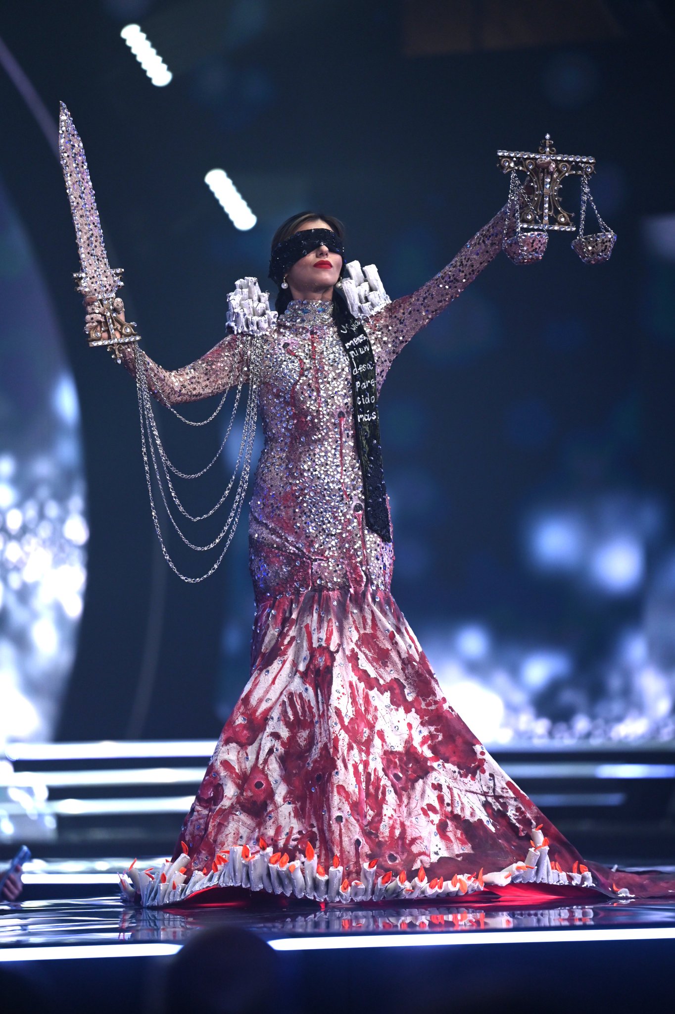 Miss Universo El Salvador 2021 desfila vestido alegórico a situación del país