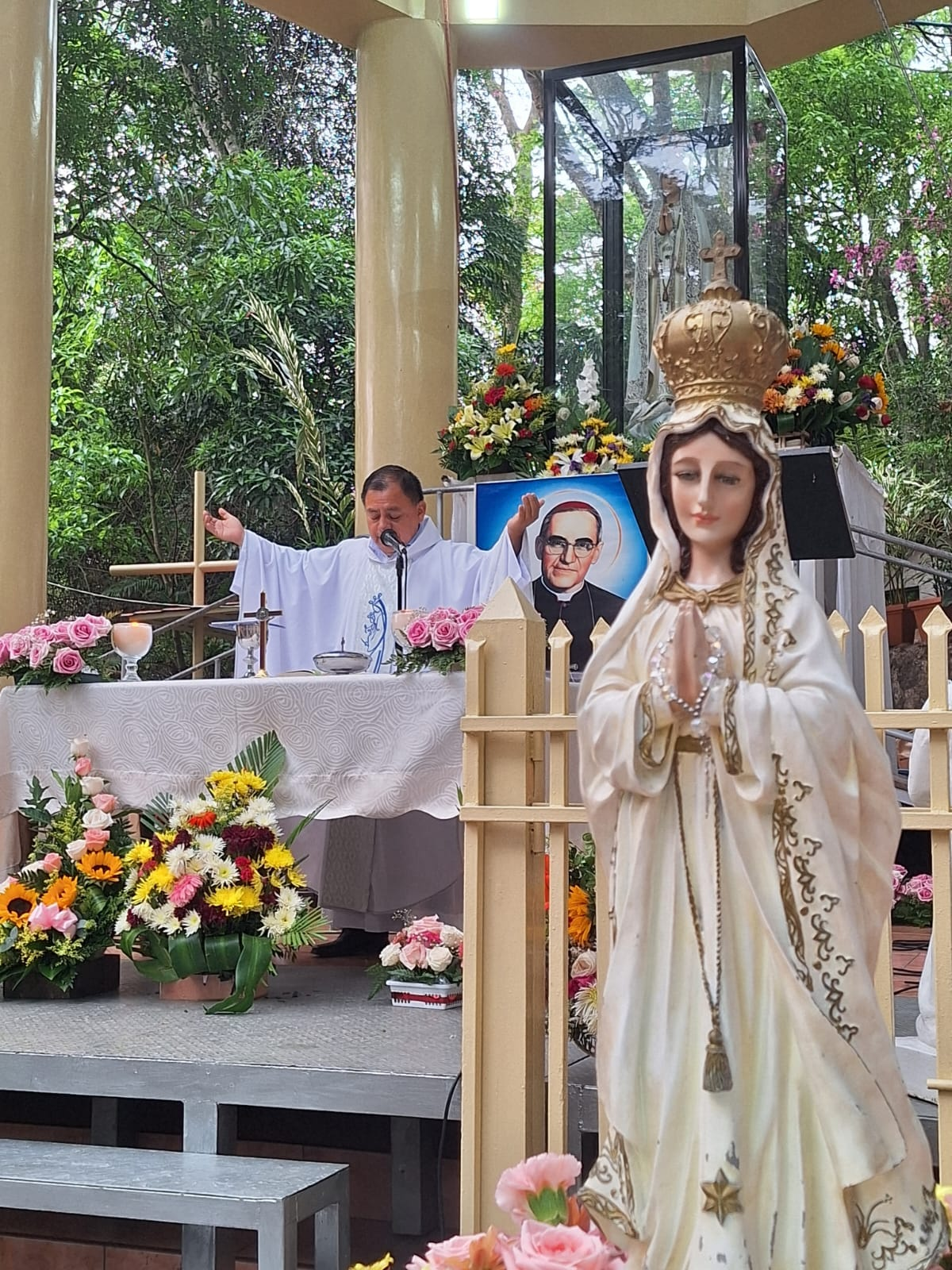 #Cojutepeque Feligreses de diversas partes del país se están congregando en el santuario de la Virgen de Fátima, ubicado en el cerro de Las Pavas, en Cojutepeque. La ocasión es la celebración del 107º aniversario de las apariciones a tres niños pastores en Portugal. Lea más en: